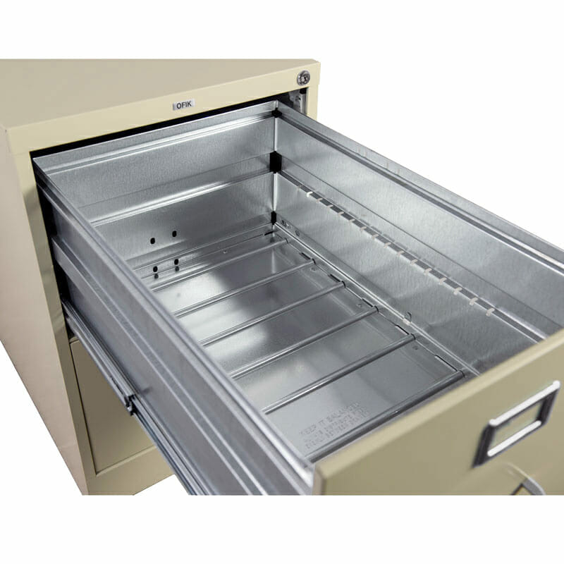 Archivero metalico de 2 gavetas con diseño institucional y estructura resistente. Cada gaveta cuenta con botón de seguridad para evitar aperturas accidentales e incluye un separador interior para una mejor organización de documentos. Ideal para uso continuo en oficinas que requieren eficiencia y durabilidad.