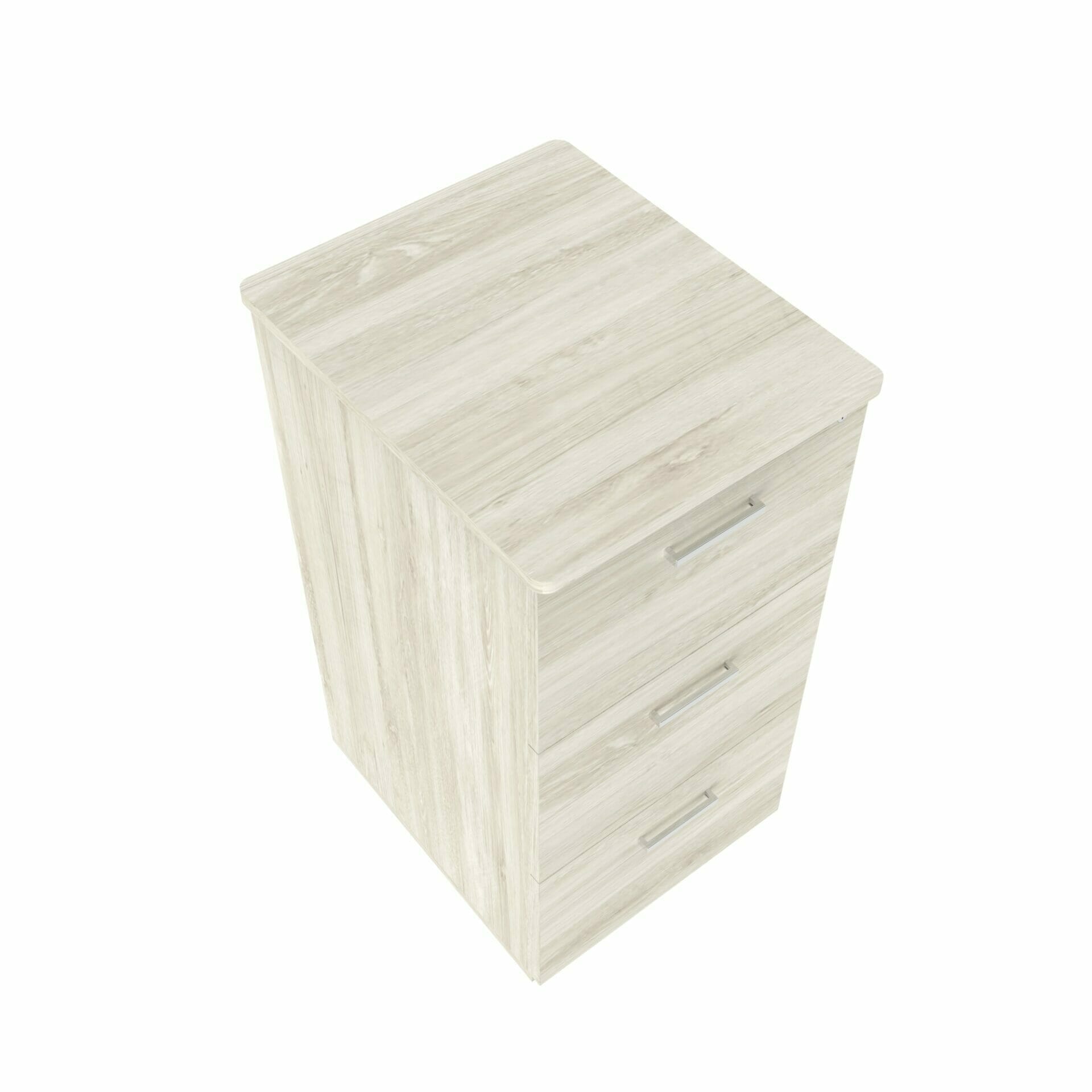 Archivero con tres cajones con cerradura y correderas embalinadas para uso rudo. Acepta documentos tamaño carta u oficio.