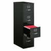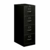 Archivero vertical metálico de 4 gavetas de marca HON con diseño robusto y funcional. Cuenta con portaetiquetas de identificación, jaladeras de acción positiva con seguro para el pulgar, y gavetas con costados metálicos altos ideales para carpetas colgantes. Fabricado en acero reforzado con suspensión de 3 puntos que permite abrir completamente cada gaveta.