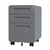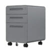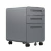 Archivero móvil de 3 cajones con cerradura de seguridad integrada. Su sistema de bloqueo evita la apertura simultánea de los cajones y garantiza estabilidad. Incluye 5 rodajas, dos de ellas con giro de 360° y freno, para facilitar el movimiento sin comprometer la seguridad.