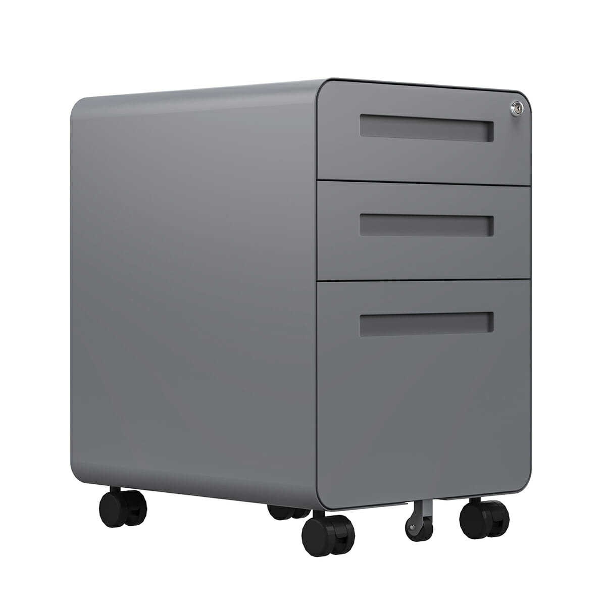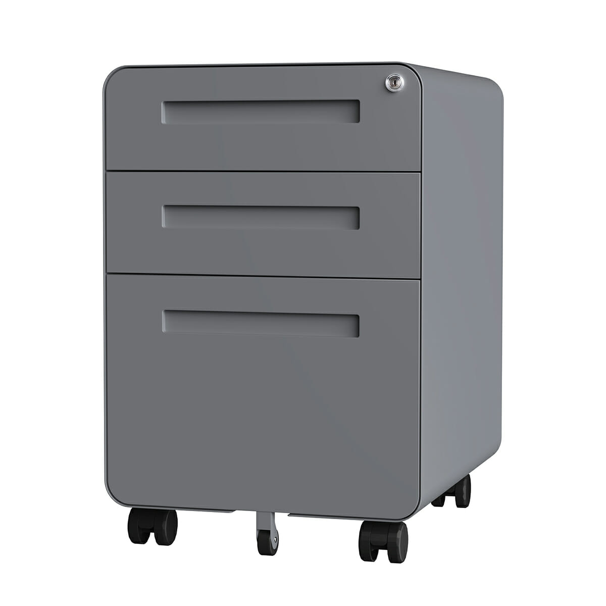 Archivero de 3 cajones de aspecto elegante con diseño de esquina redondeada.