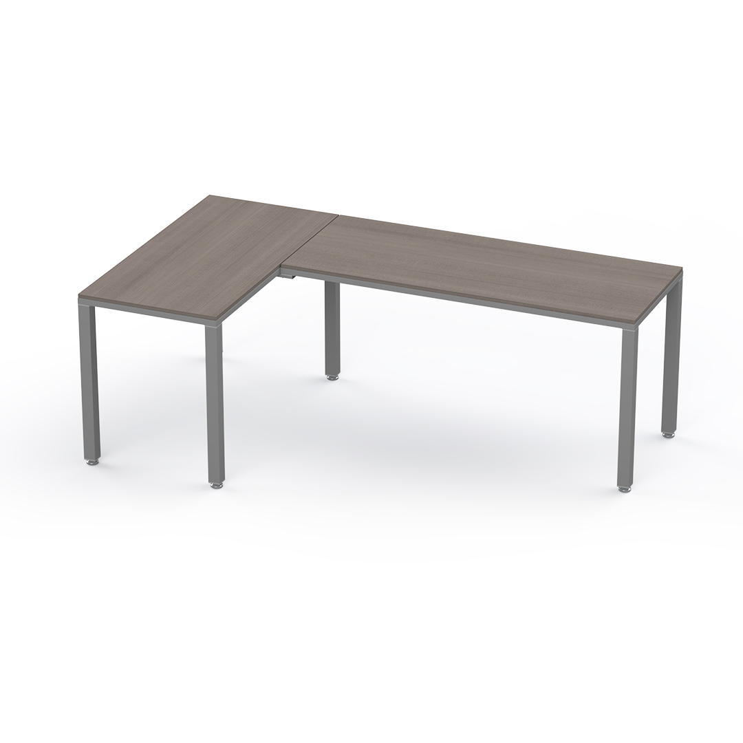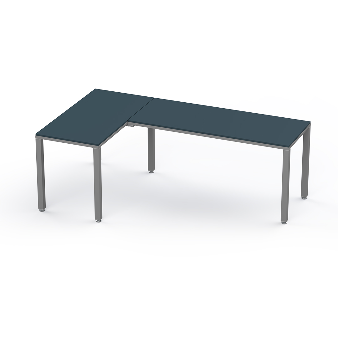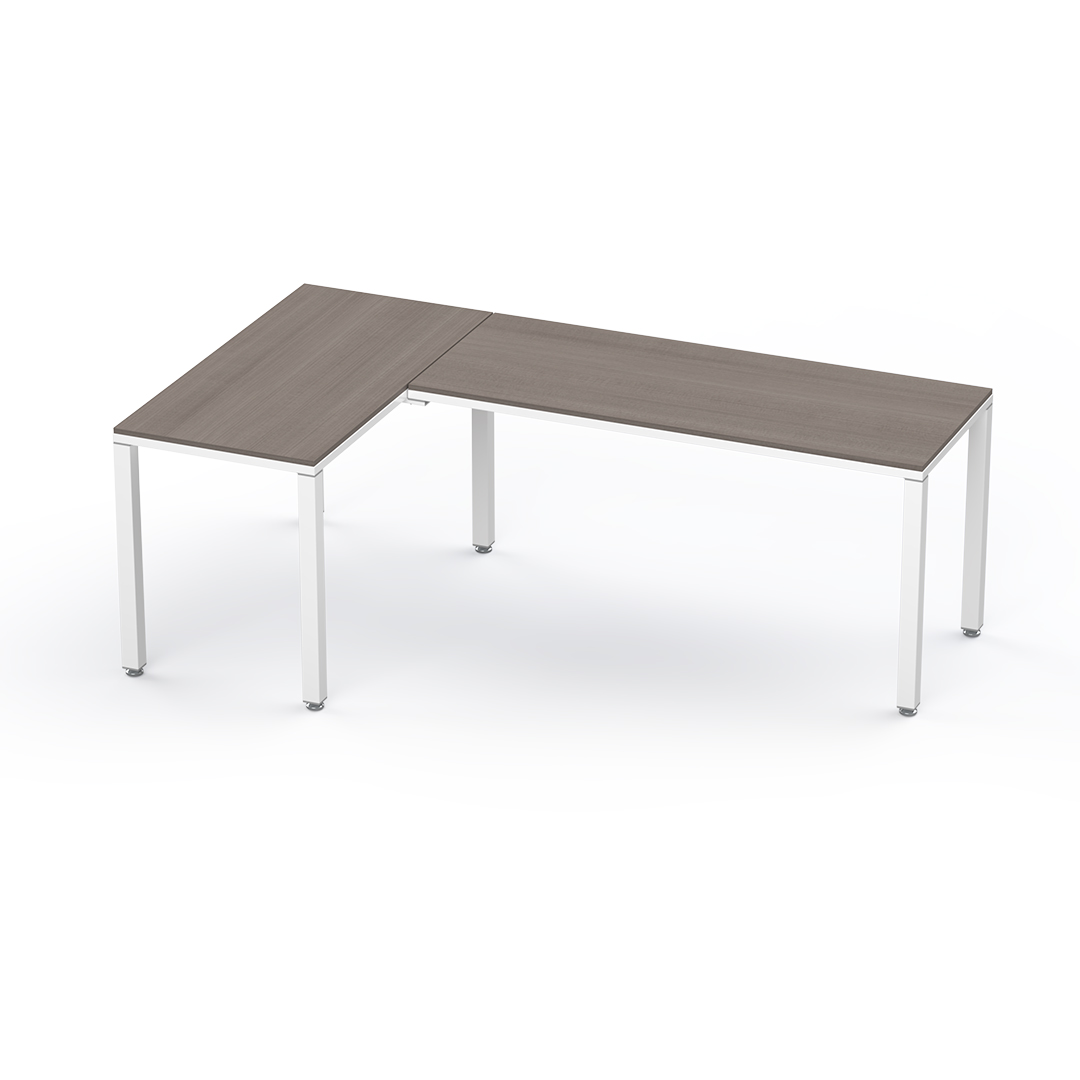 La configuración en L se recomienda para usuarios que requieren operar en multitareas en donde requieren por lo menos dos áreas para diferentes propósitos. Por ejemplo: atención a visitas, y un área de trabajo donde puedan manejar papelería. O en otro ejemplo, un área de trabajo para manejar documentos y otra área en donde se tiene equipo especializado como scanners, impresoras u otro.
