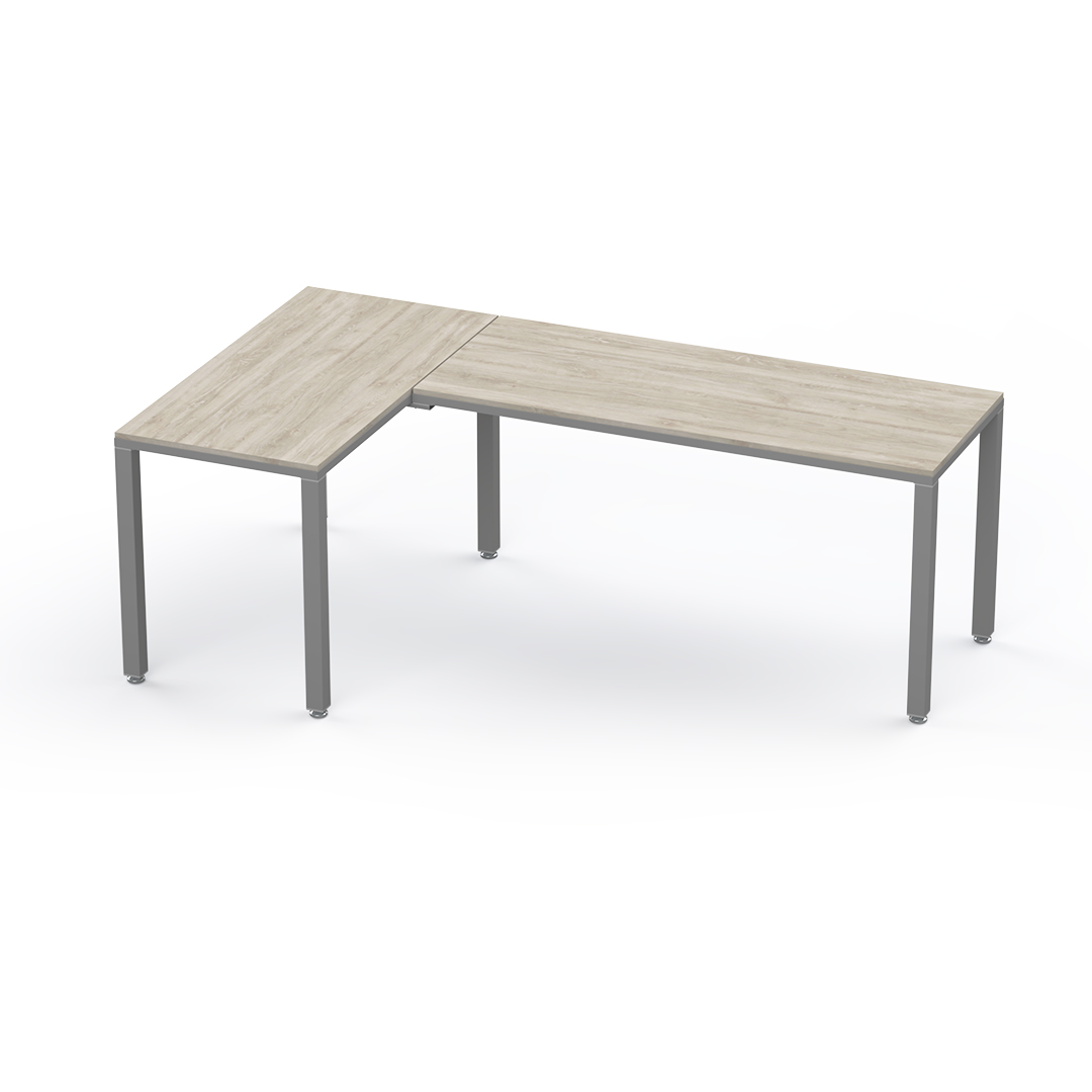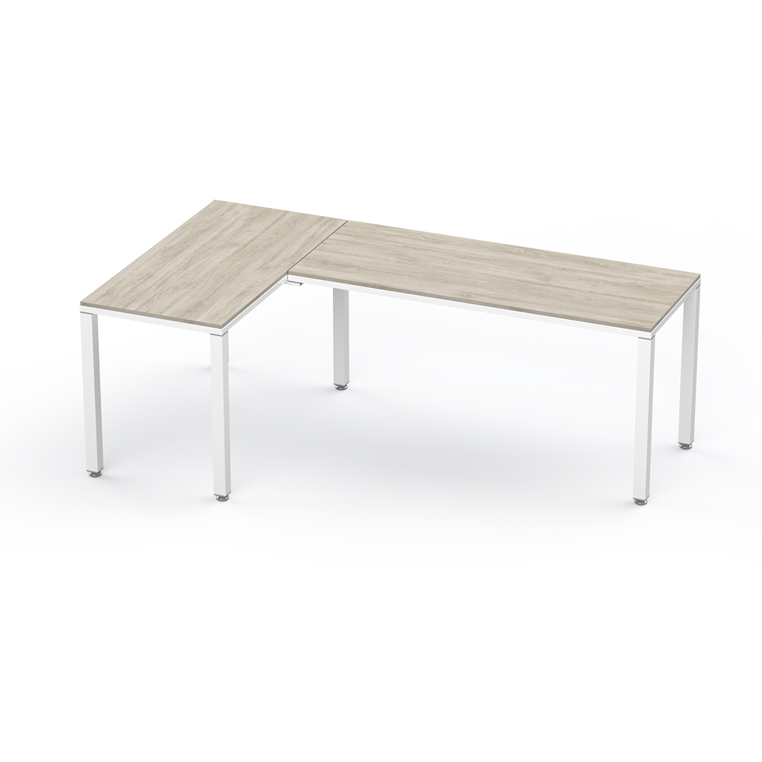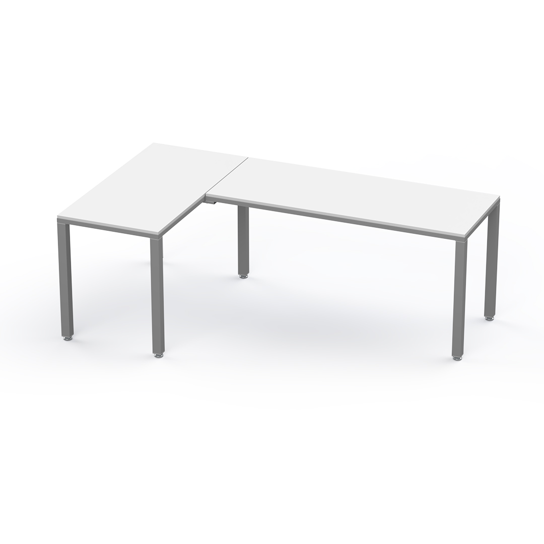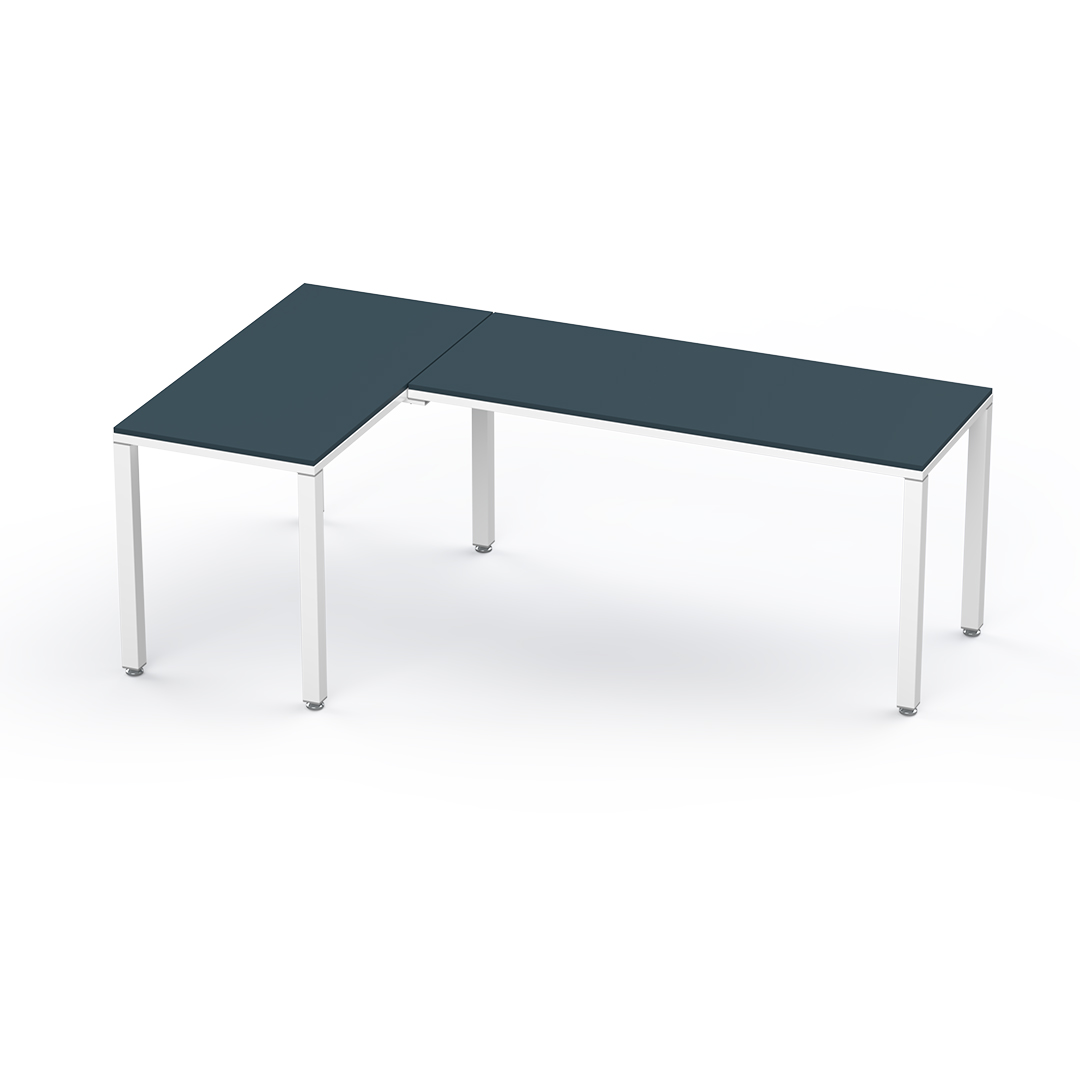 La configuración en L se recomienda para usuarios que requieren operar en multitareas en donde requieren por lo menos dos áreas para diferentes propósitos. Por ejemplo: atención a visitas, y un área de trabajo donde puedan manejar papelería. O en otro ejemplo, un área de trabajo para manejar documentos y otra área en donde se tiene equipo especializado como scanners, impresoras u otro.