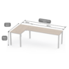 La configuración en L se recomienda para usuarios que requieren operar en multitareas en donde requieren por lo menos dos áreas para diferentes propósitos. Por ejemplo: atención a visitas, y un área de trabajo donde puedan manejar papelería. O en otro ejemplo, un área de trabajo para manejar documentos y otra área en donde se tiene equipo especializado como scanners, impresoras u otro.