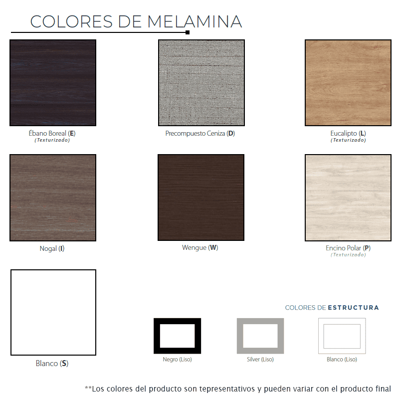 - Cubiertas de melamina de 19 mm resistente a la abrasión.