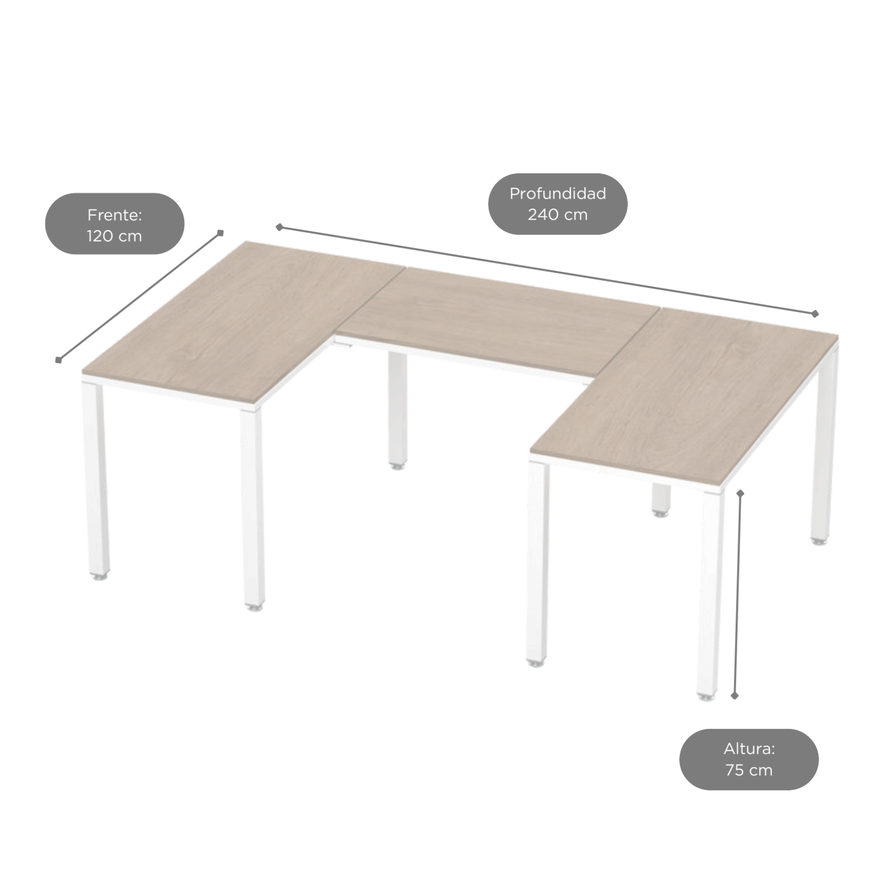 La configuración U conformada por 3 escritorios es ideal para un ejecutivo ya que permite una distribución eficiente del espacio, facilita la colaboración con otros compañeros y proporciona un entorno de trabajo versátil que puede usarse para reuniones, presentaciones y tareas individuales, todo al mismo tiempo.