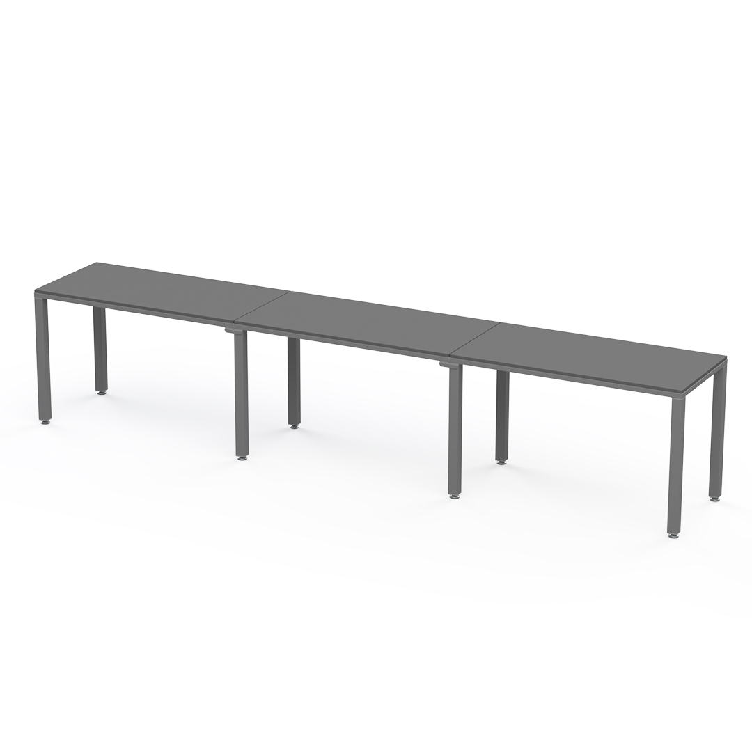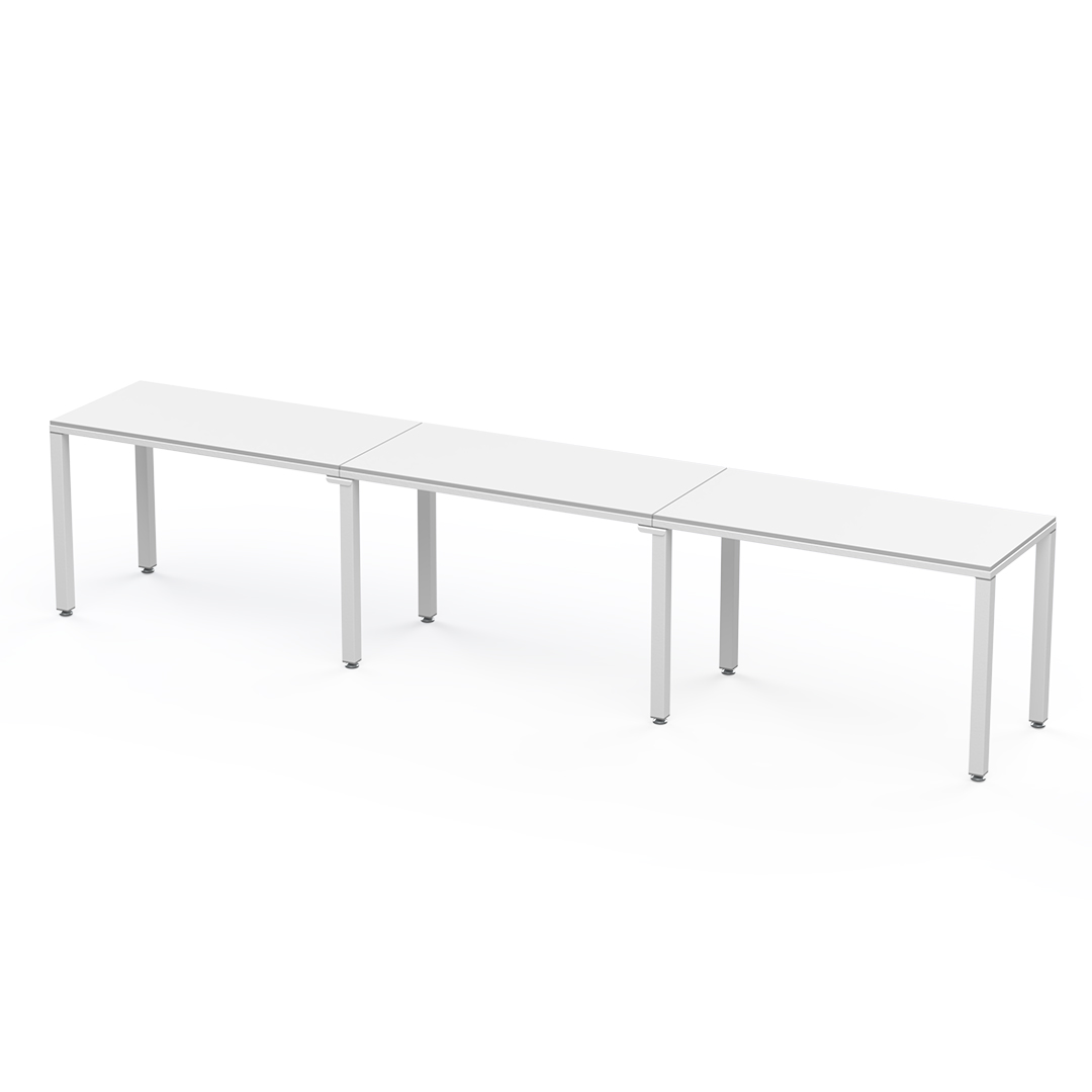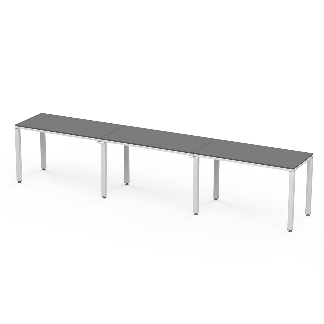 Escritorio lineal para 3 personas es una configuración lineal que permite extender su área de trabajo sin límite. Puede ir de 3 a un número ilimitado de personas.
