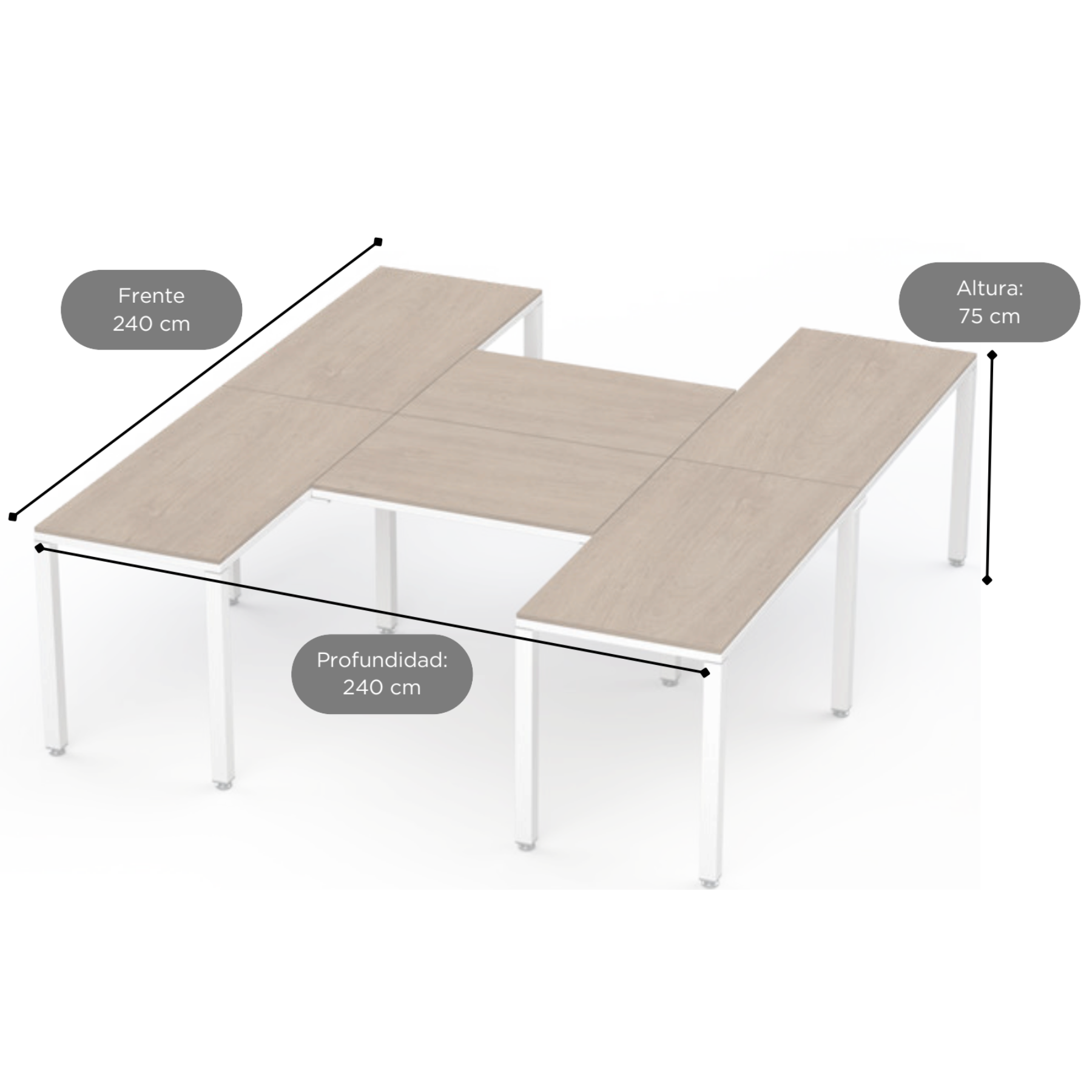 La configuración en "H" es perfecta para usuarios multitarea: optimiza el espacio, impulsa la colaboración con compañeros y crea un entorno de trabajo versátil y productivo.