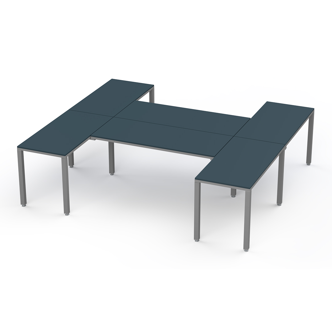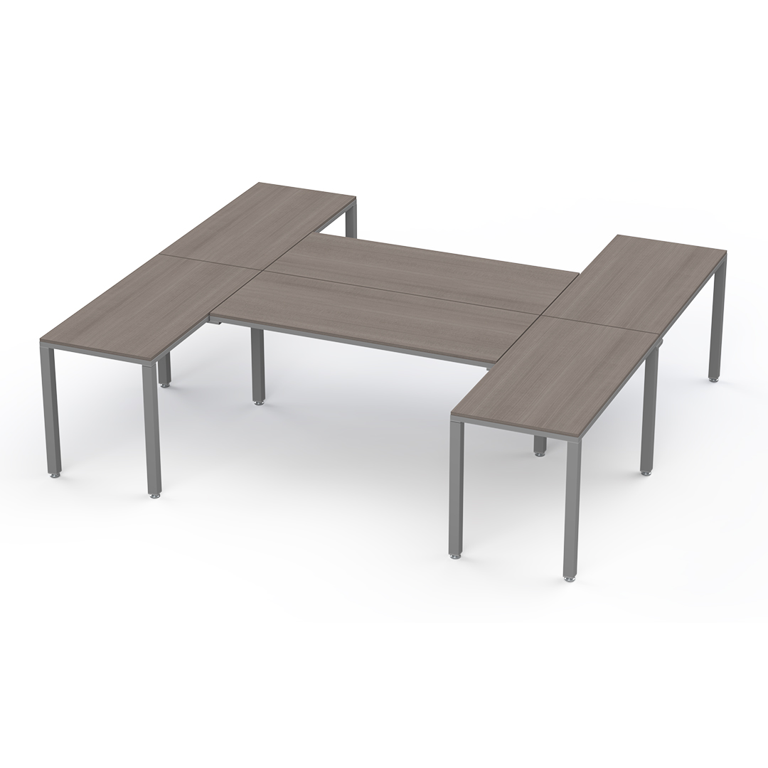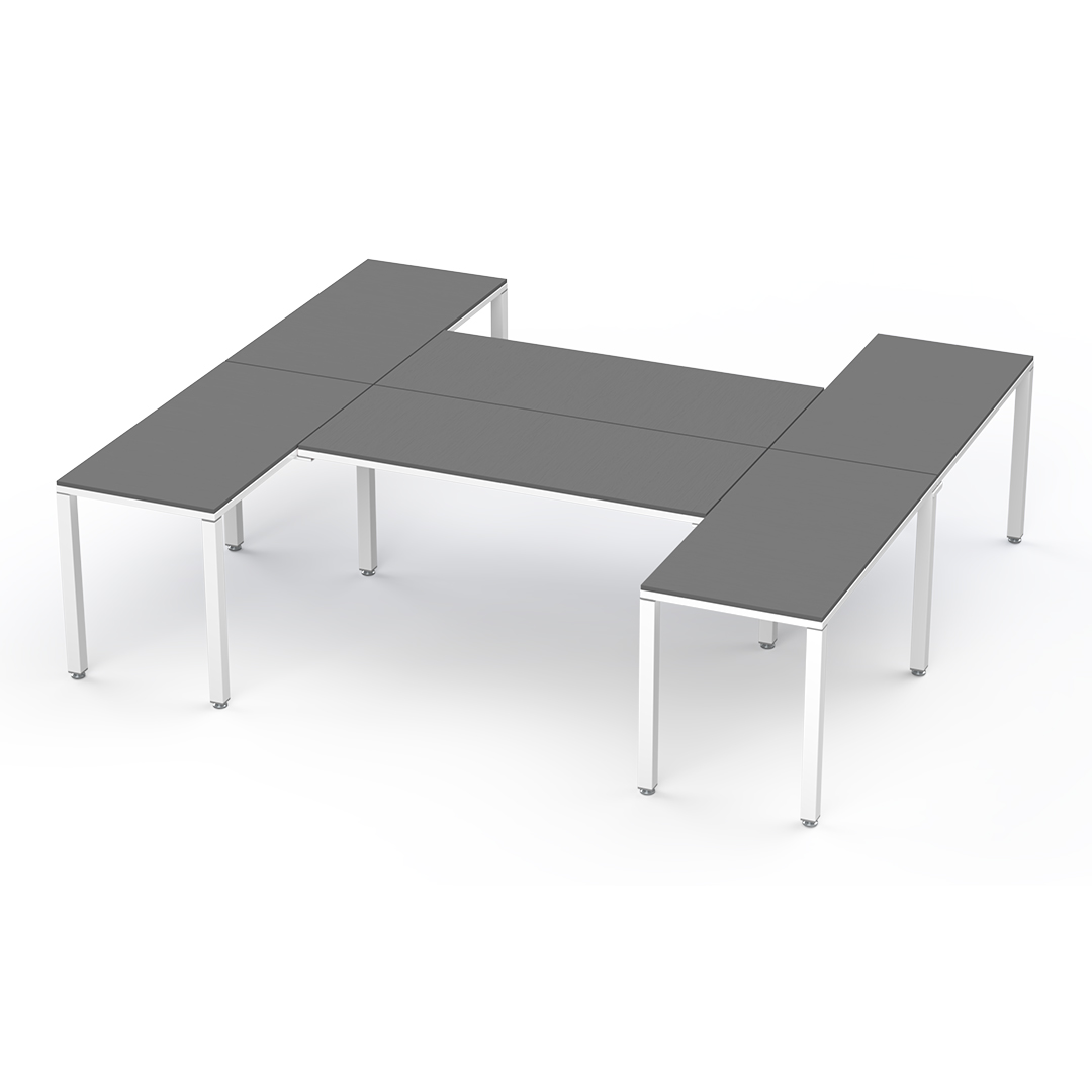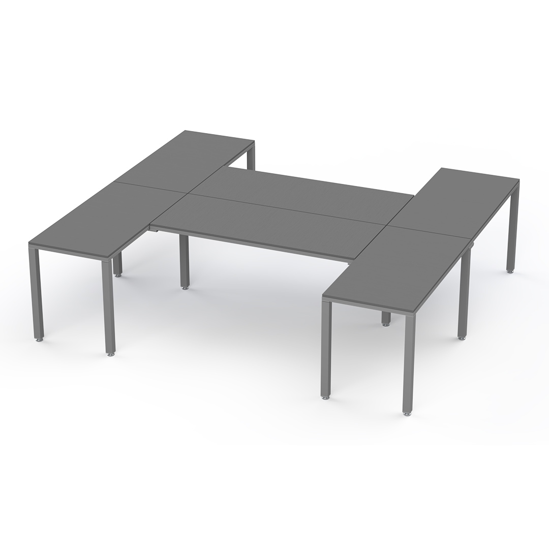 La configuración en "H" es perfecta para usuarios multitarea: optimiza el espacio, impulsa la colaboración con compañeros y crea un entorno de trabajo versátil y  productivo.