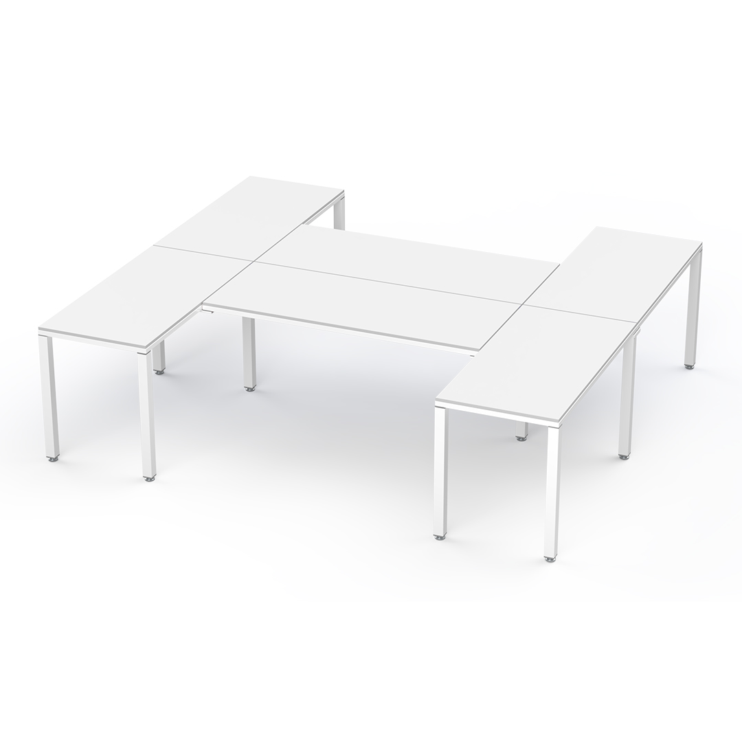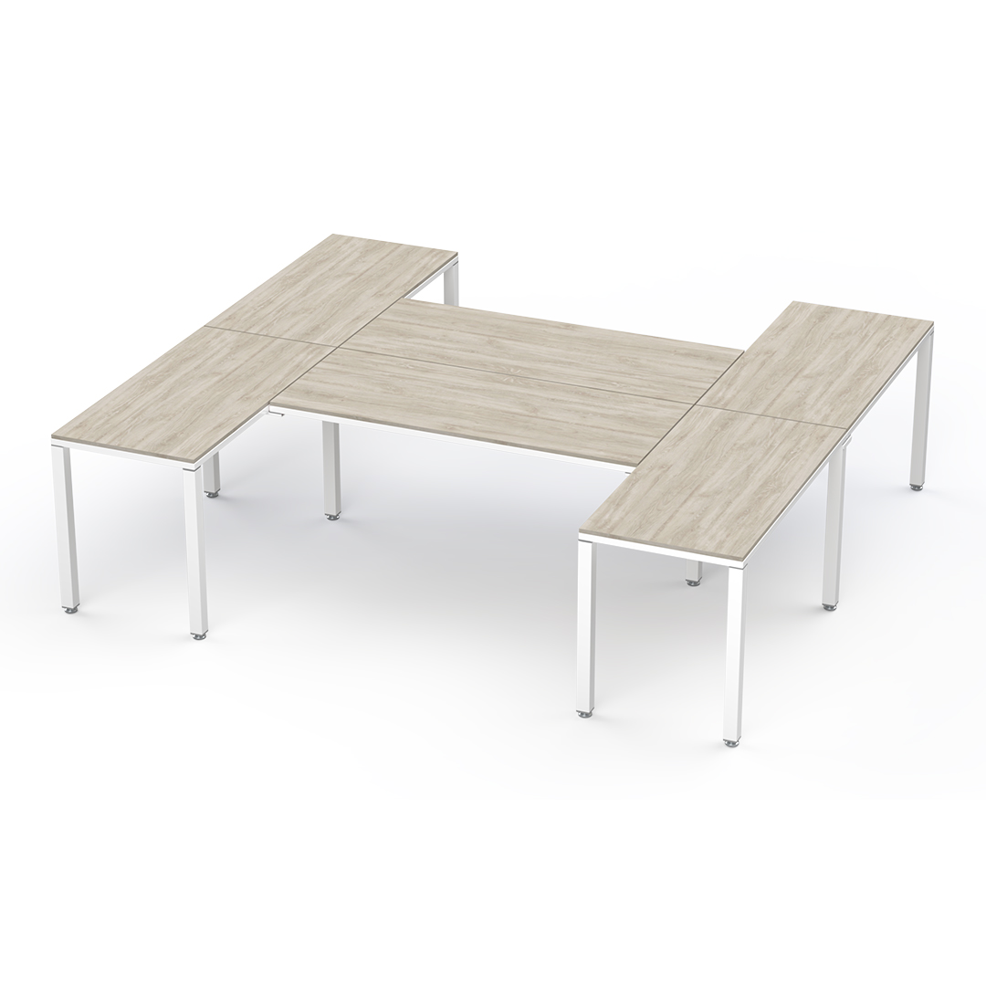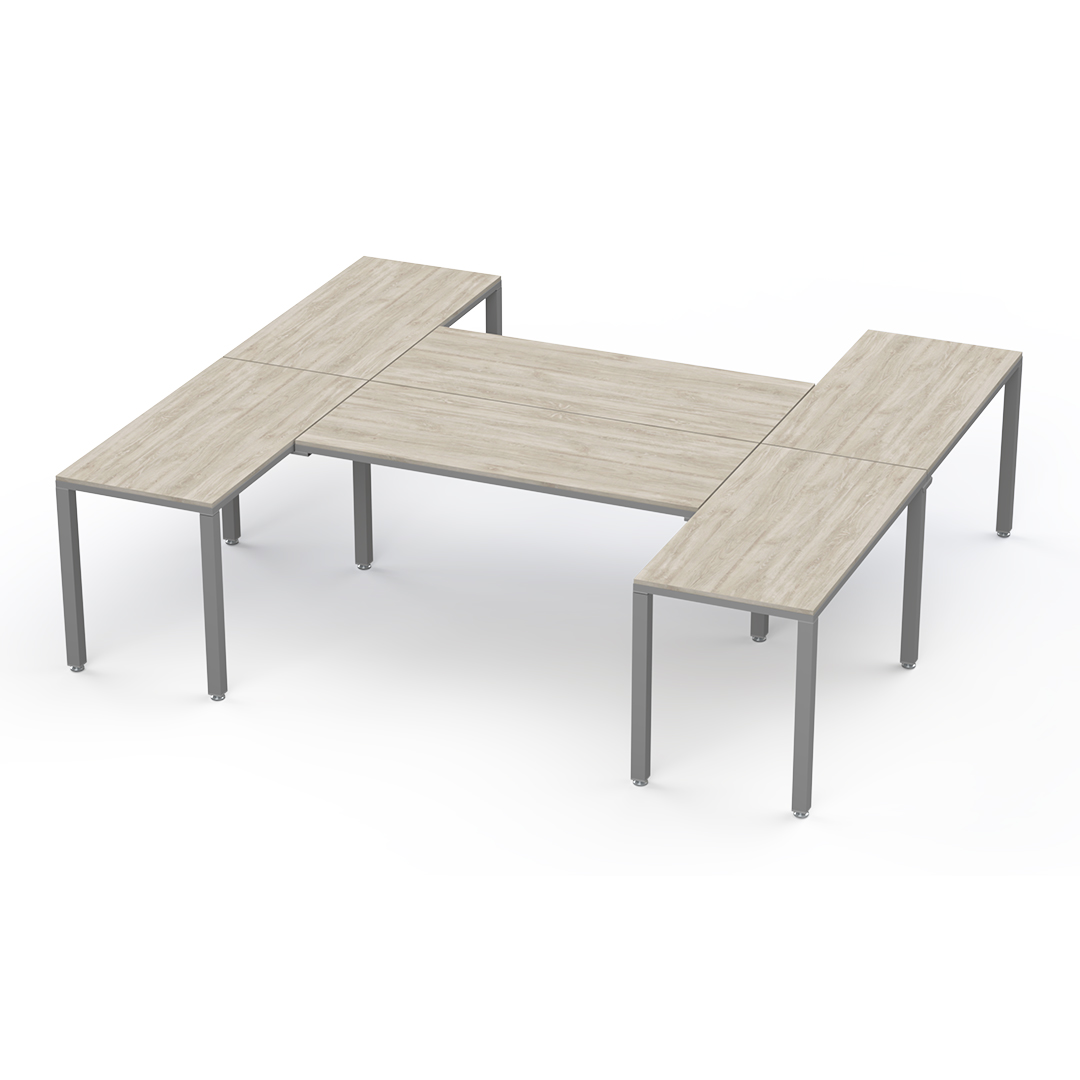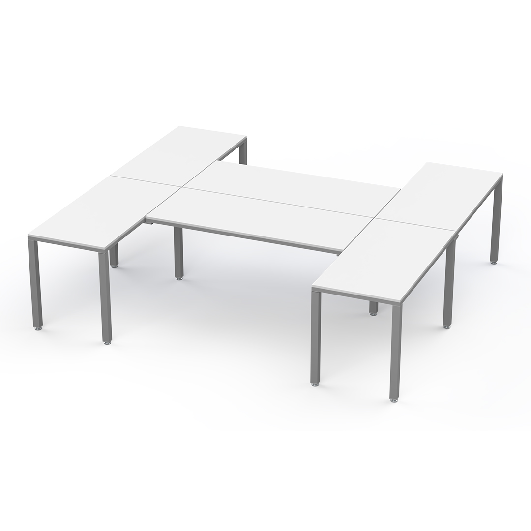 La configuración en "H" es perfecta para usuarios multitarea: optimiza el espacio, impulsa la colaboración con compañeros y crea un entorno de trabajo versátil y  productivo.