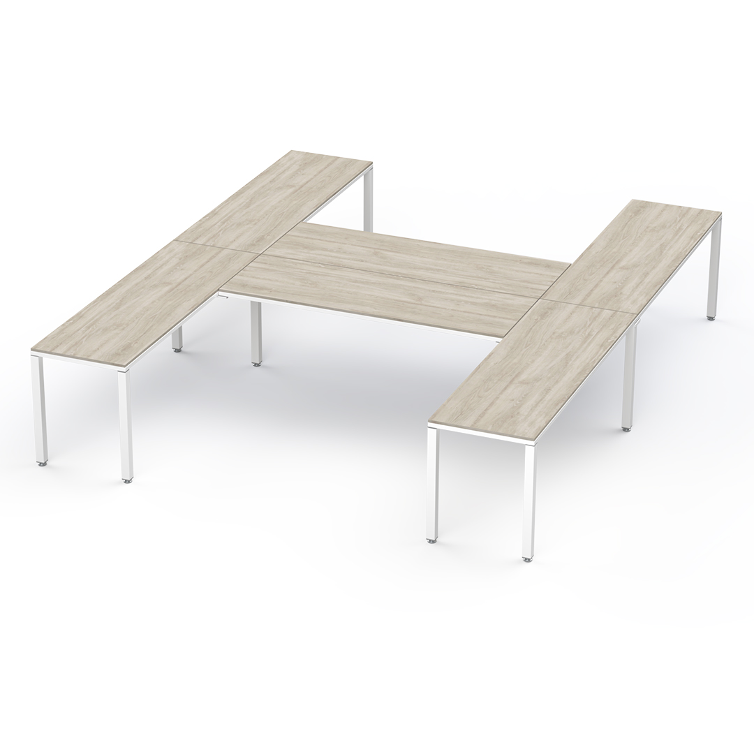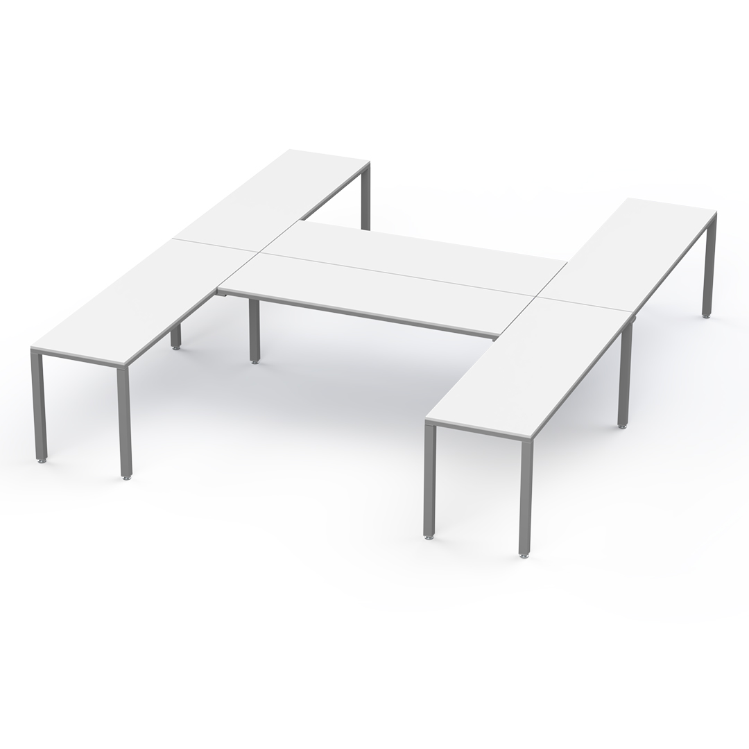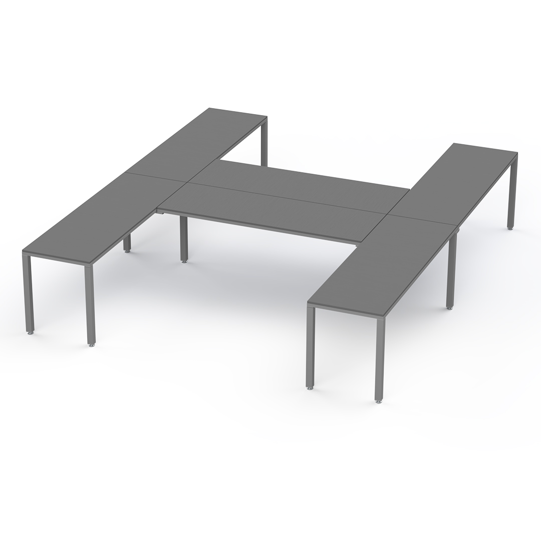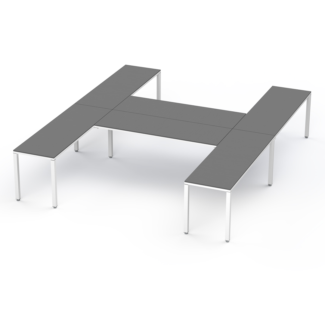La configuración en "H" es perfecta para usuarios multitarea: optimiza el espacio, impulsa la colaboración con compañeros y crea un entorno de trabajo versátil y productivo.