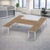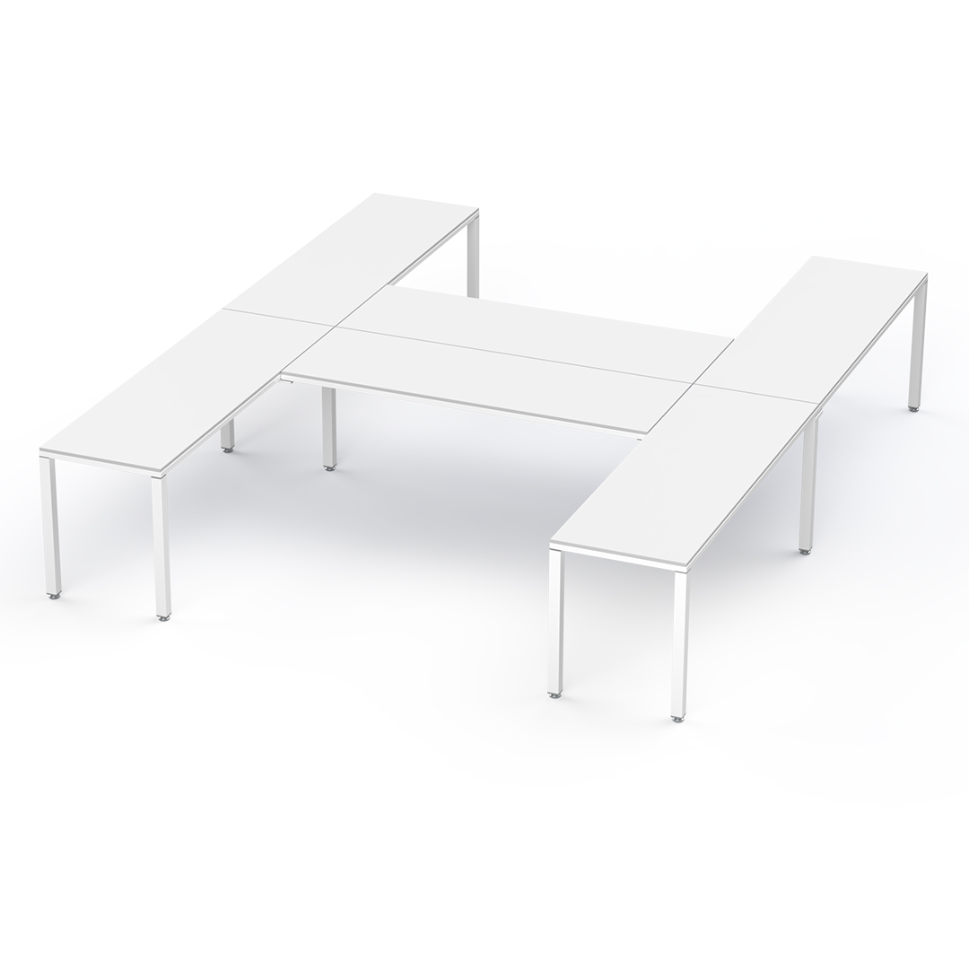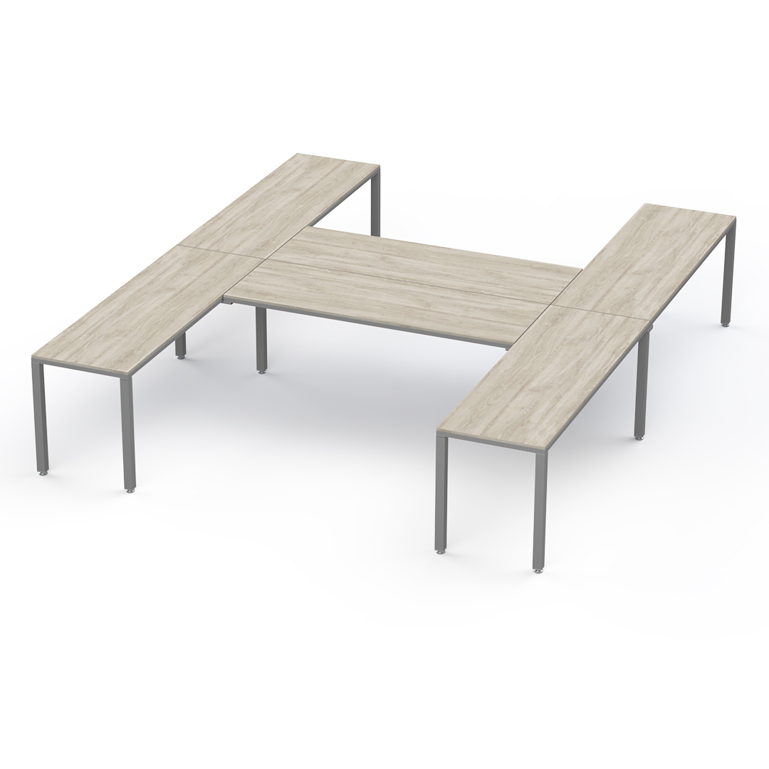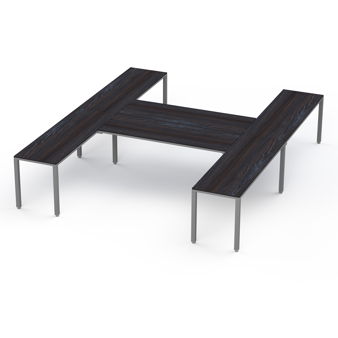 La configuración en "H" es perfecta para usuarios multitarea: optimiza el espacio, impulsa la colaboración con compañeros y crea un entorno de trabajo versátil y productivo.