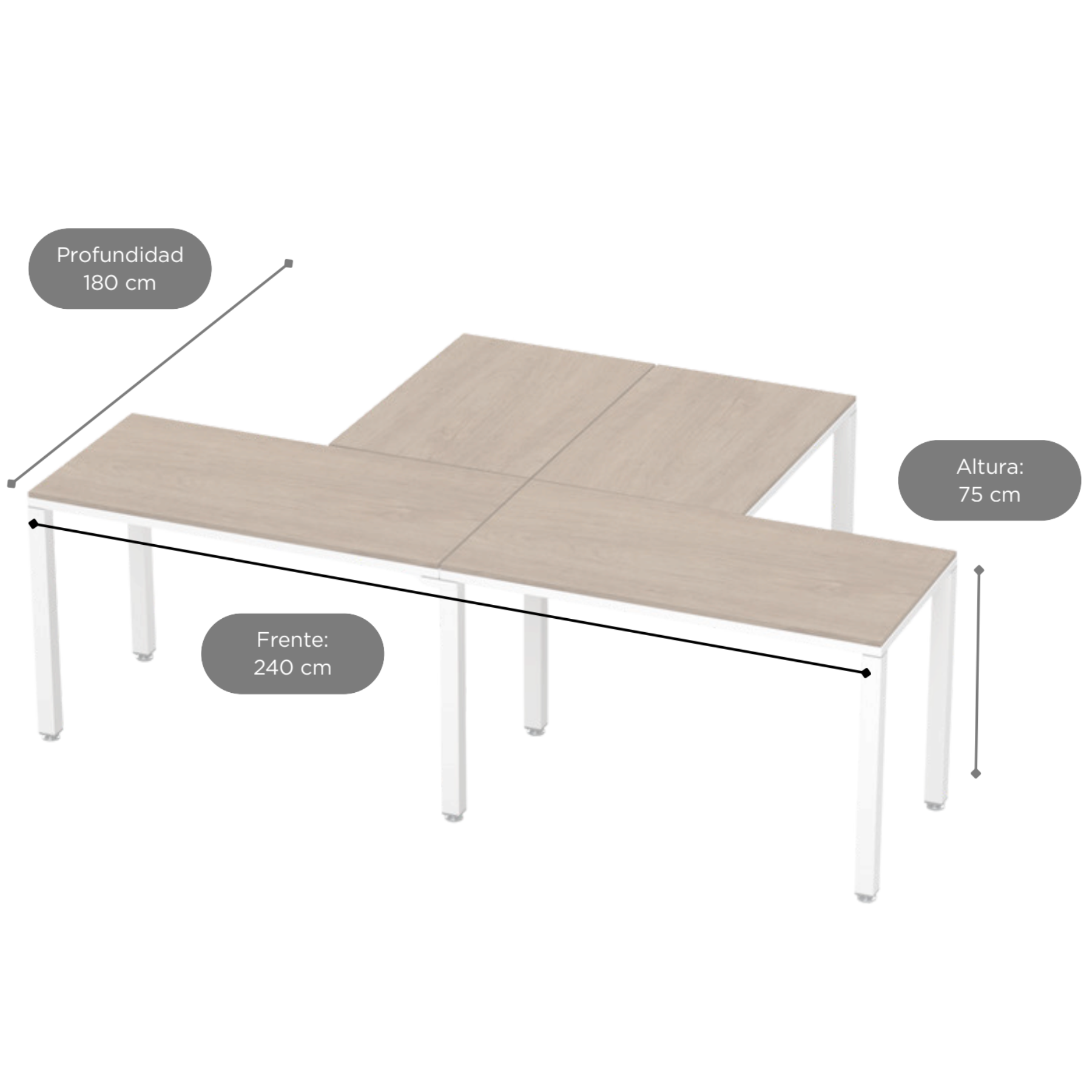 Configuración en T Billydesk 240x180cm