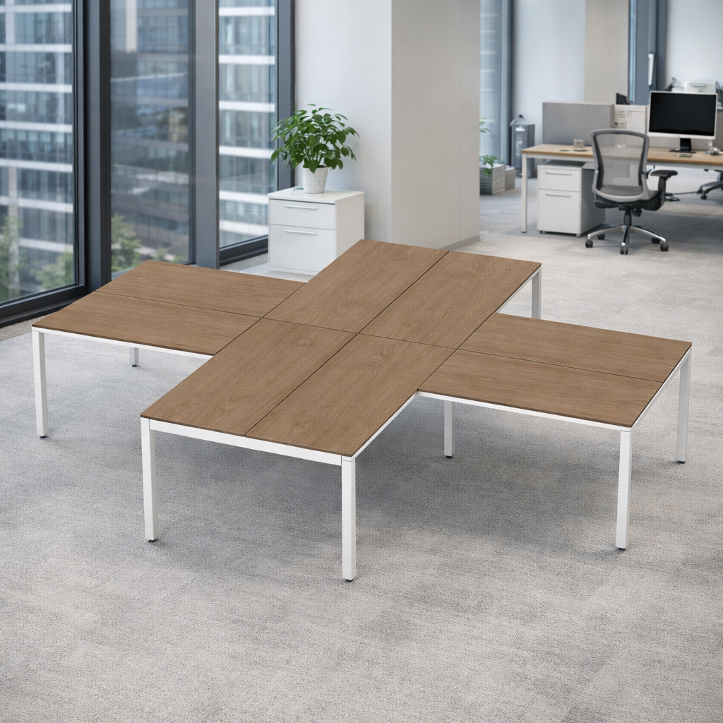 Escritorio para 4 personas/configuración en “X” by Billydesk es la opción ideal para usuarios multitarea que buscan rendimiento y comodidad. Su diseño optimiza el espacio, fomenta la colaboración inmediata entre compañeros y transforma cualquier área en un entorno de trabajo dinámico, versátil y altamente productivo.