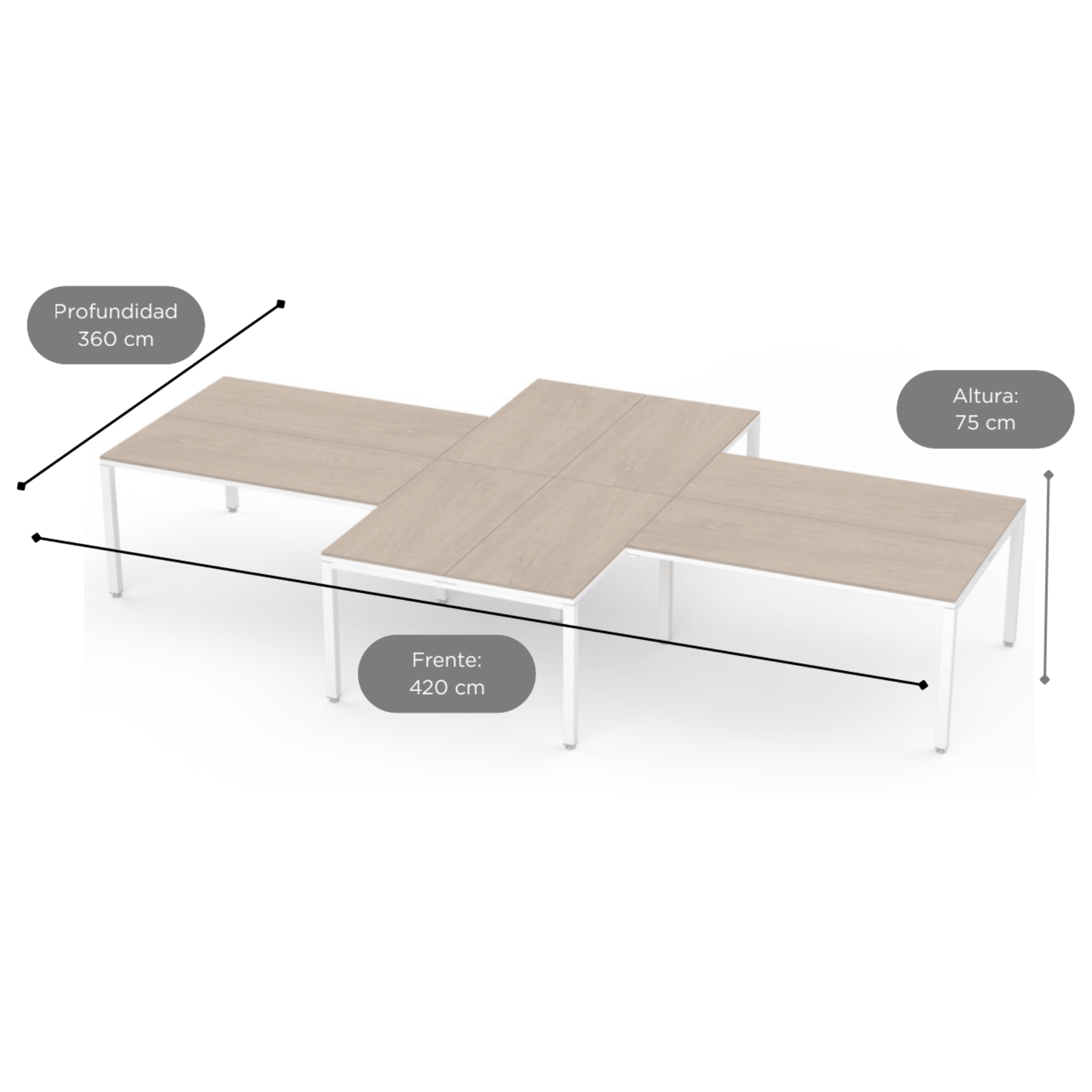 La configuración en "X" es perfecta para usuarios multitarea: optimiza el espacio, impulsa la colaboración con otros compañeros y crea un entorno de trabajo versátil y altamente productivo.