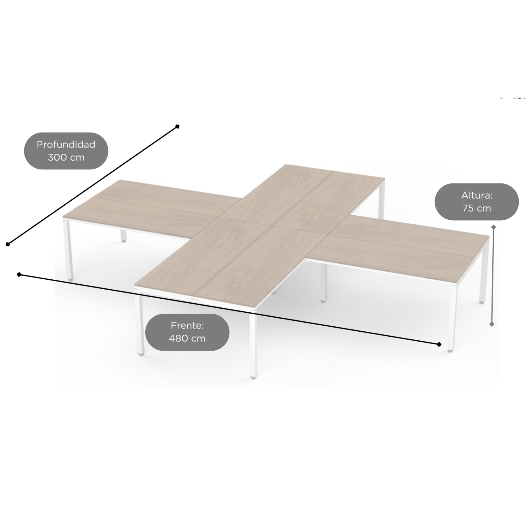 Escritorio para 4 personas/configuración en “X” by Billydesk es la opción ideal para usuarios multitarea que buscan rendimiento y comodidad. Su diseño optimiza el espacio, fomenta la colaboración inmediata entre compañeros y transforma cualquier área en un entorno de trabajo dinámico, versátil y altamente productivo.