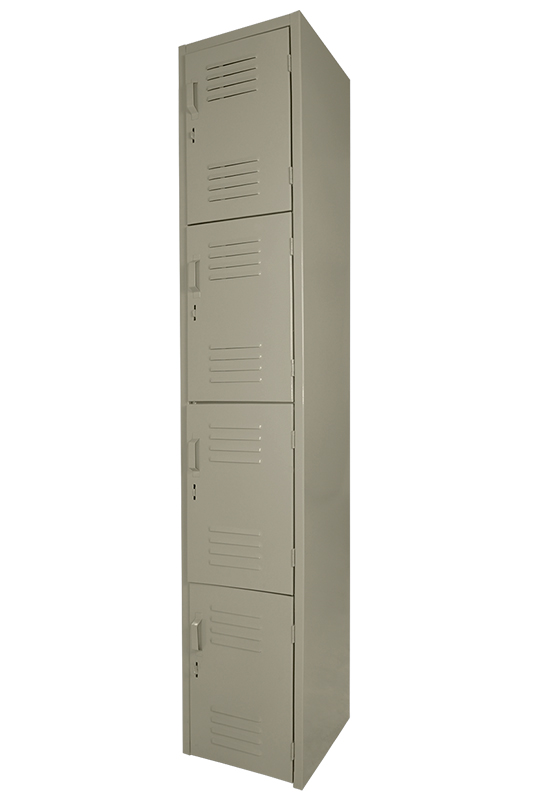 Locker de 4 puertas está diseñado con medidas estándar que permiten optimizar costos sin comprometer la calidad ni la durabilidad. Es una solución práctica y resistente para espacios que requieren almacenamiento seguro y funcional en áreas industriales, corporativas o educativas. Cuenta con dos juegos de rejillas de ventilación tipo persiana, con cuatro aberturas cada una, que favorecen la circulación del aire en el interior. Además, la línea incluye opciones de mayor amplitud para adaptarse a diferentes necesidades de almacenamiento.