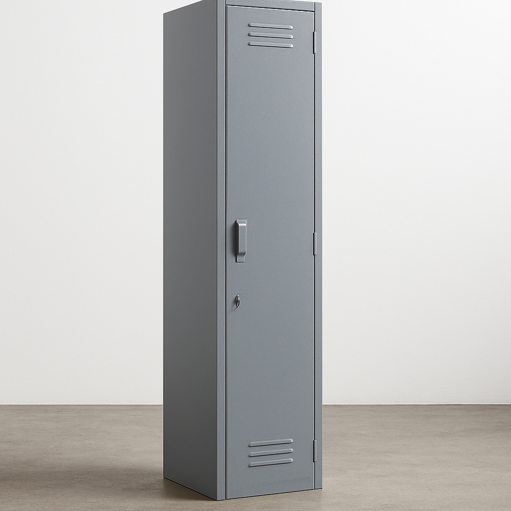 Locker de 1 puerta está diseñado con medidas estándar que permiten optimizar costos sin comprometer la calidad ni la durabilidad. Es una solución práctica y resistente para espacios que requieren almacenamiento seguro y funcional en áreas industriales, corporativas o educativas. Cuenta con dos juegos de rejillas de ventilación tipo persiana, con cuatro aberturas cada una, que favorecen la circulación del aire en el interior. Además, la línea incluye opciones de mayor amplitud para adaptarse a diferentes necesidades de almacenamiento.