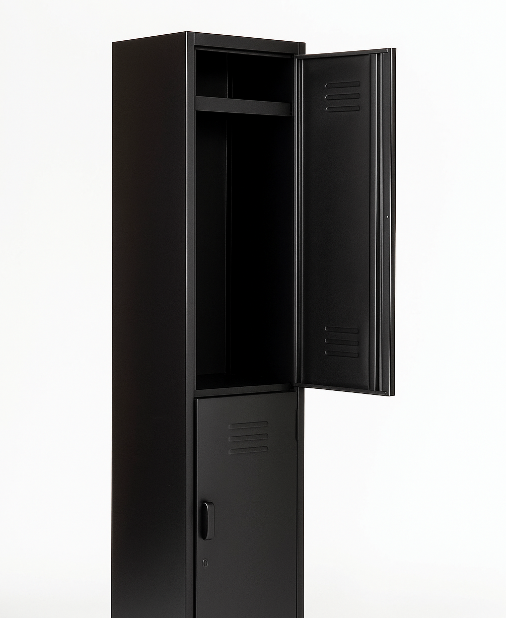 Locker de 2 puertas, gracias a sus medidas estándar, este locker esta optimizado para ofrecerle un precio competitivo sin descuidar la calidad y duración. También contamos con lockers de mayor amplitud. Cuenta con dos juegos de rejillas de ventilación tipo persiana con 4 rejillas cada una. Locker fabricado en lámina calibre 24.