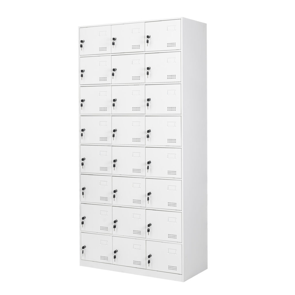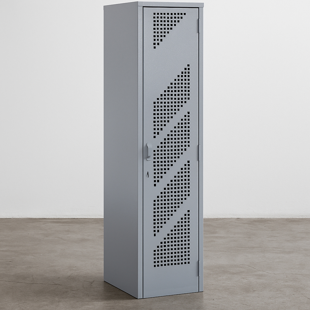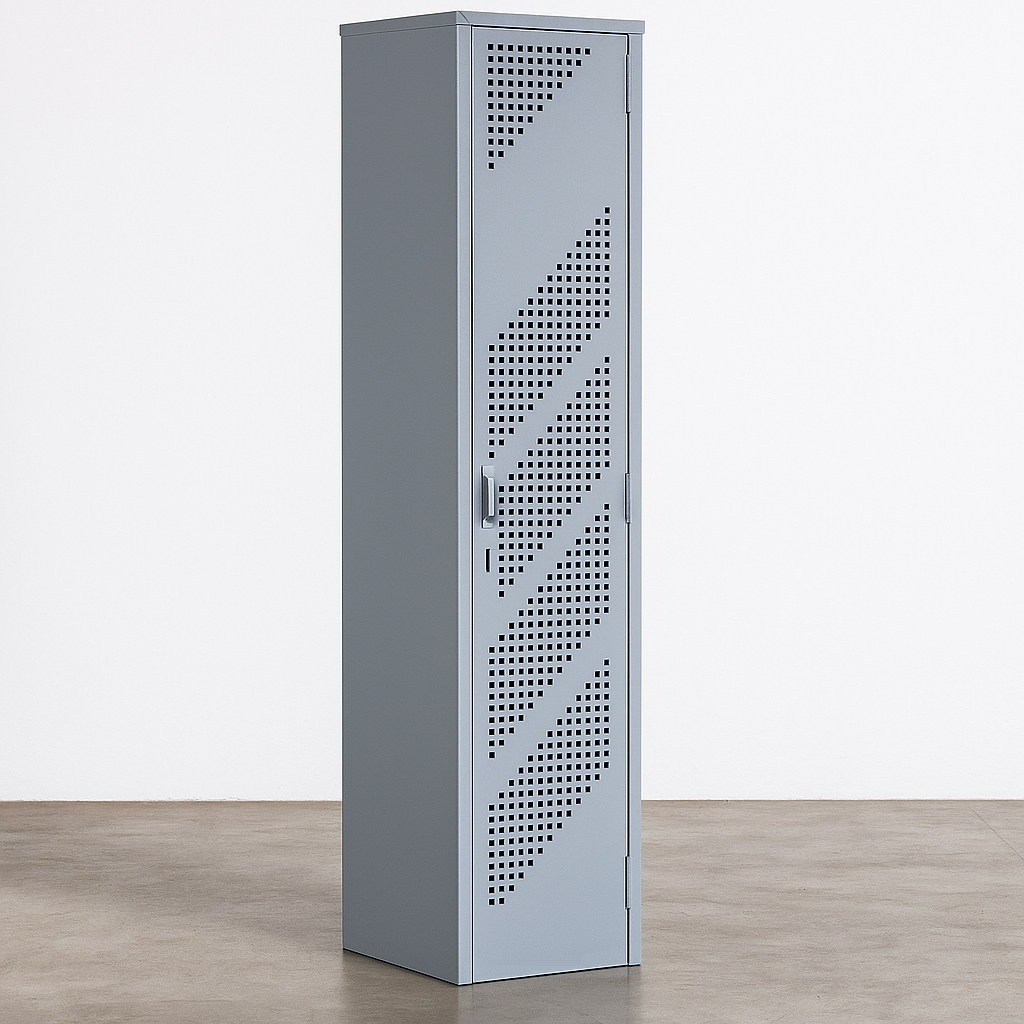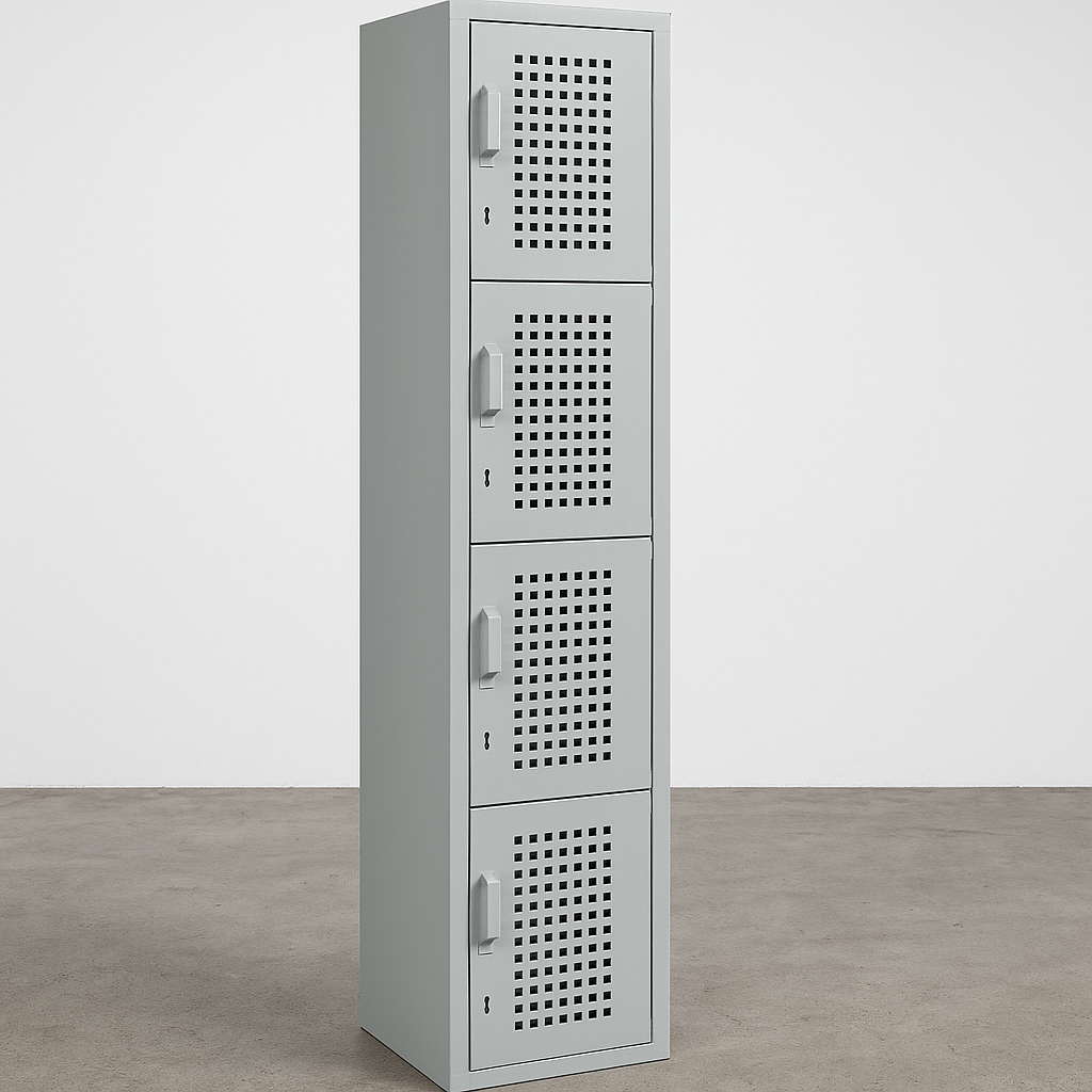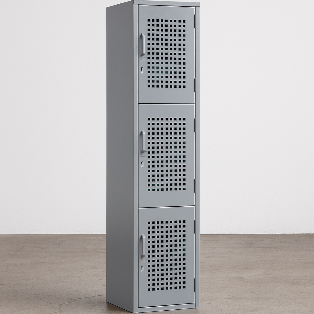 Locker de 3 puertas que gracias a sus medidas estándar, este locker esta optimizado para ofrecerle un precio competitivo sin descuidar la calidad y duración. También contamos con lockers de mayor amplitud. Cuenta con dos juegos de rejillas de ventilación tipo persiana con 4 rejillas cada una. Locker fabricado en lámina calibre 24.