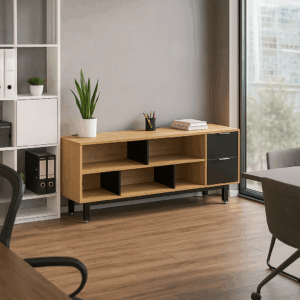 Credenza Alta con Doble Papelera y Archivo 150 x 75 cm