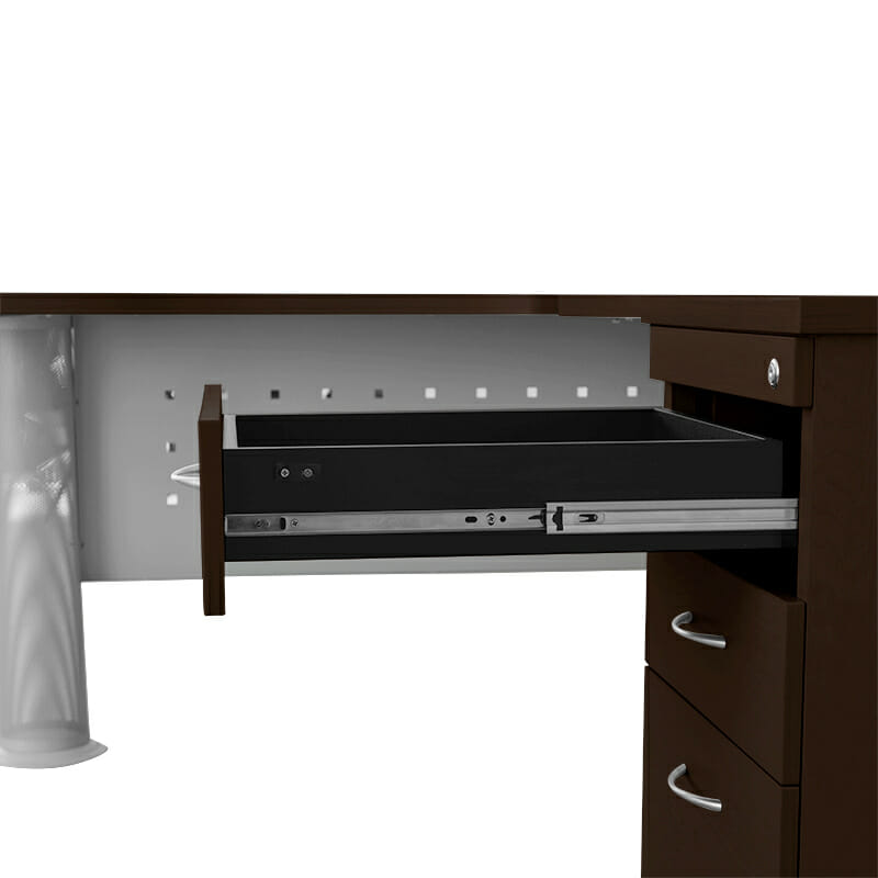 Modulo Operativo Elite derecho se caracteriza por contar con una variedad de productos presentados en distintos tamaños y colores. La practicidad del Módulo Elite permite a su usuario contar con un espacio de trabajo cómodo además de funcional. Cuenta con un escritorio y un lateral con cajonera.