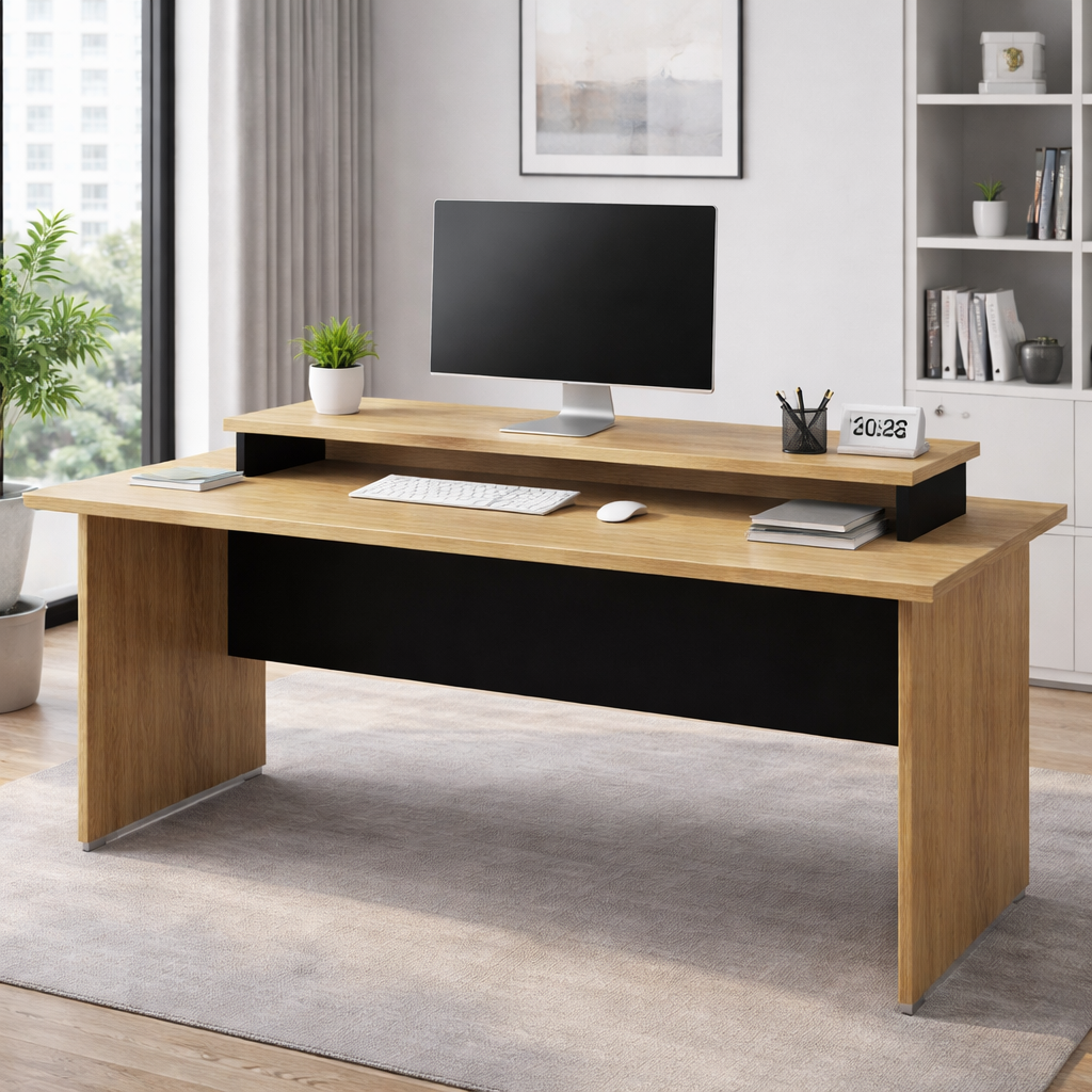 Accesorio que se coloca encima de un escritorio para maximizar el espacio de almacenamiento y organización. Es ideal para mantener el área de trabajo ordenada y eficiente.