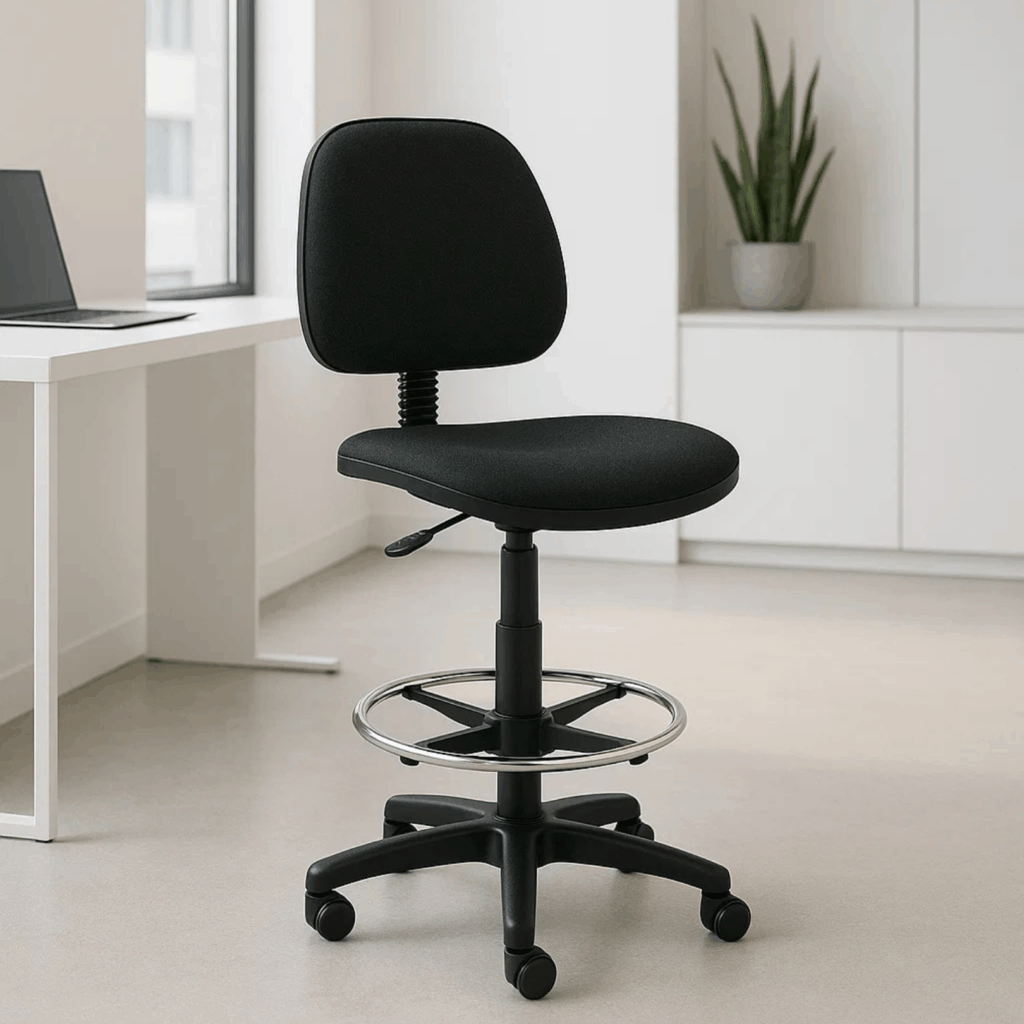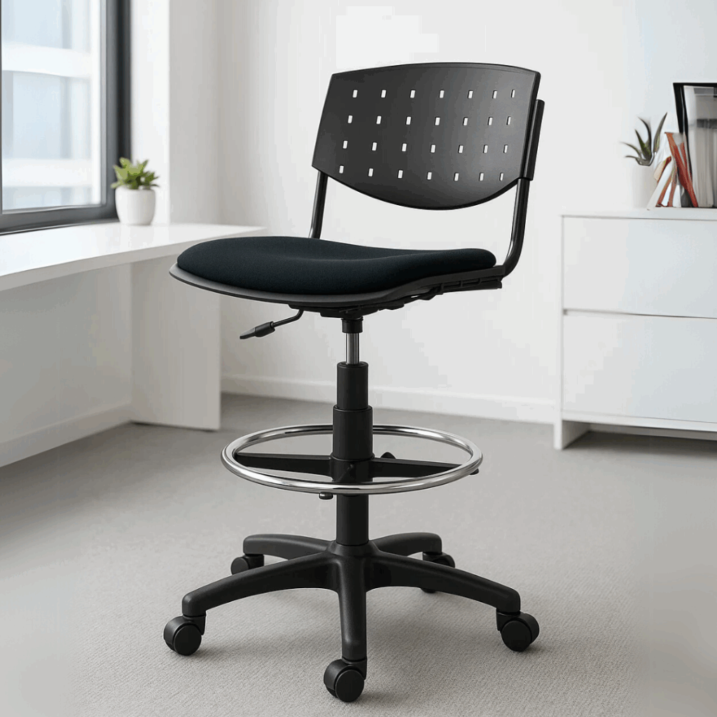 silla cajero Regia se distingue por su durabilidad y precios accesibles. Esta silla es ideal para funciones operativas y de atención al cliente, por lo que se ha convertido en una opción popular para amueblar una gran variedad de oficinas. Asiento y respaldo acojinado con espuma ergonómica. Aro con acabado cromado.