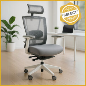 Silla Ejecutiva H1 Mesh con Tela Gris y Estructura Blanca